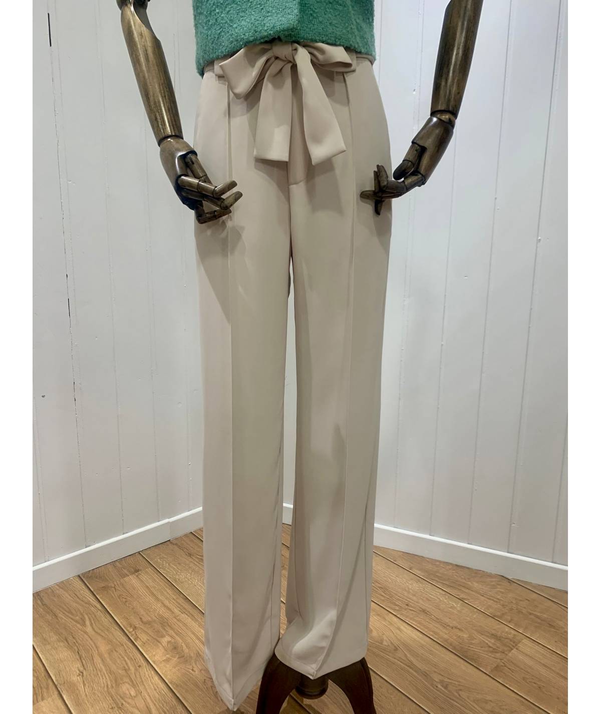 PANTALON FLUIDO DE PINZAS BEIGE.